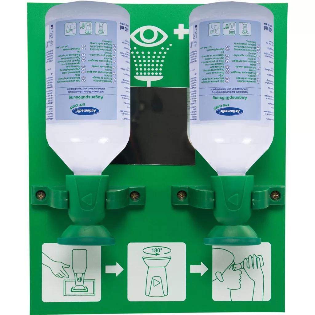 Actiomedic EYE CARE Double I fali szemkimosó állomás 2 x 500 ml 0.9% nátrium-klorid oldattal