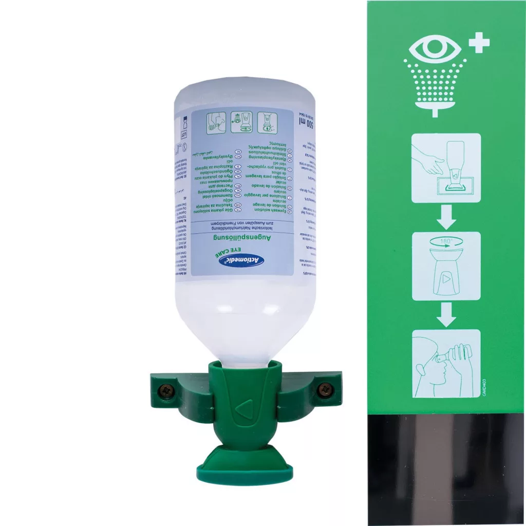 Actiomedic EYE CARE Single I fali szemkimosó állomás 500 ml 0.9% nátrium-klorid oldattal
