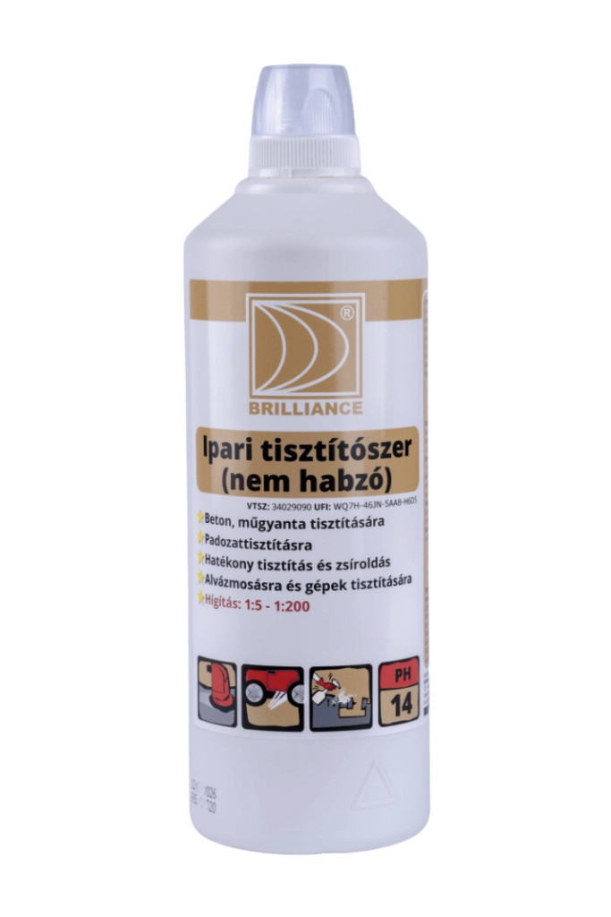 A Brilliance® Ipari tisztítószer (nem habzó), gyengén habzó felületaktív anyagokkal készült, korróziógátló komponenst is tartalmaz. Alkalmazható magasnyomású kompresszorokban és egyéb készülékekben, olyan területeken, ahol a nagy olaj- és zsíroldás elengedhetetlen. Hatásos kormos, odaégett felületekre a sütőiparban, húsiparban, vendéglátóiparban, stb. Felhasználható hideg vízzel is, minimális hatásidővel (a legszennyezettebb felületeknél is csak 5–10 perc). Csak alkáli- és vízálló felületre használható!