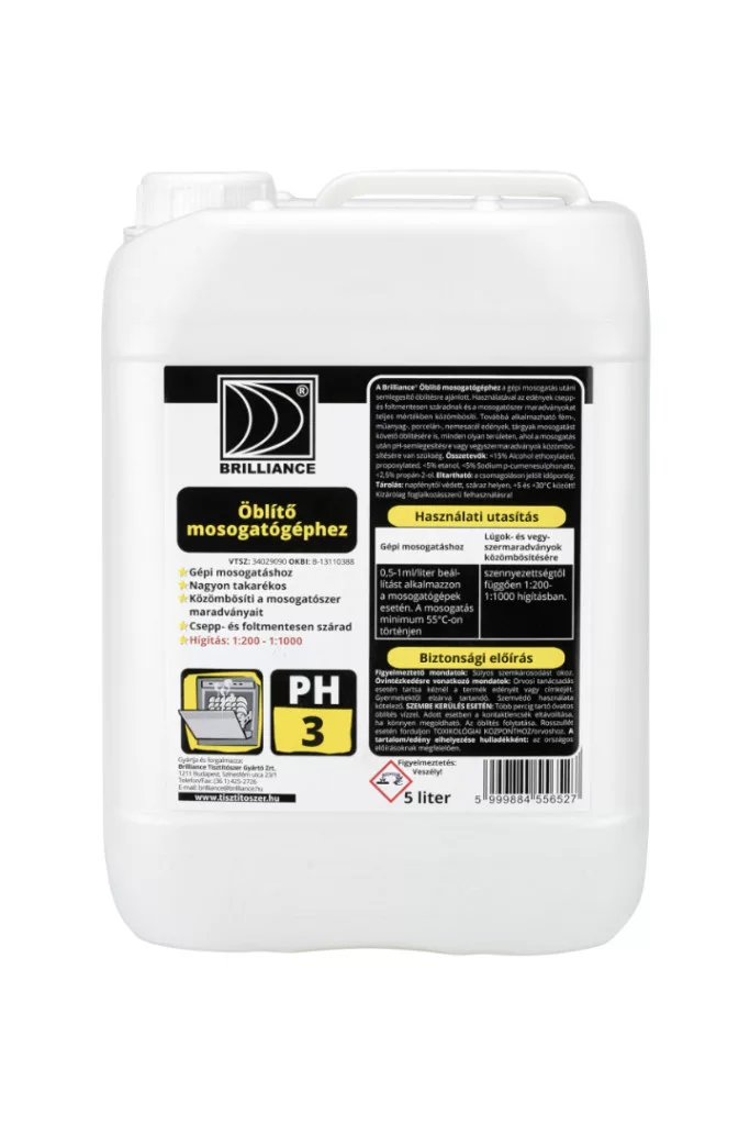 A Brilliance® Öblítő mosogatógéphez a gépi mosogatás utáni semlegesítő öblítésre ajánlott. Használatával az edények csepp- és foltmentesen száradnak, s a mosogatószer maradványokat teljes mértékben közömbösíti. Továbbá alkalmazható fém-, műanyag-, porcelán, nemesacél edények, tárgyak mosogatást követő öblítésére is, minden olyan területen, ahol a mosogatás után pH-semlegesítésre vagy vegyszermaradványok közömbösítésére van szükség.