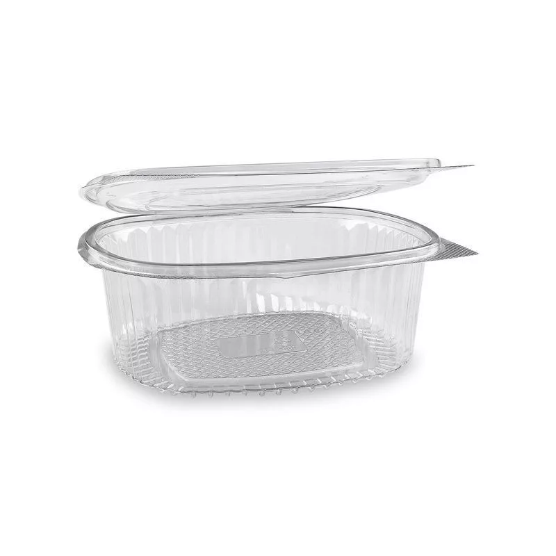 Ez a HoReCa ovális, egybefedeles doboz tökéletes választás hideg ételek, például saláták, gyümölcsök vagy hidegkonyhai készítmények csomagolásához és szállításához. A kiváló minőségű, víztiszta PET anyagból készült elviteles doboz 1000 ml-es űrtartalmával bőséges helyet kínál. Az egybeépített, cseppmentes záródású tető garantálja, hogy a tartalom biztonságban marad szállítás közben, megelőzve a kellemetlen szivárgást.