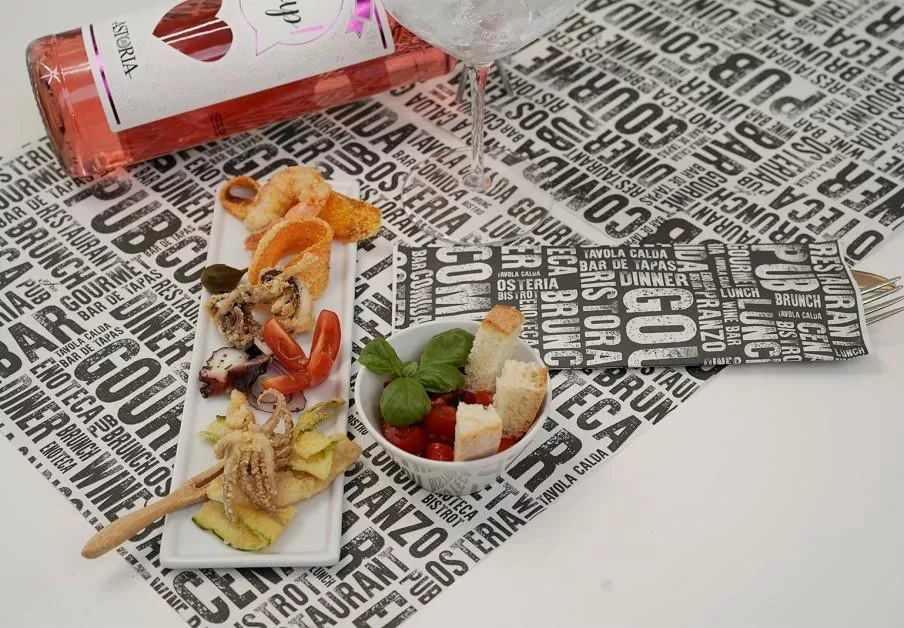 Infibra evőeszköztartó Gourmet mintás 2 rétegű 38x38 fehér szalvétával 125 darab/csomag