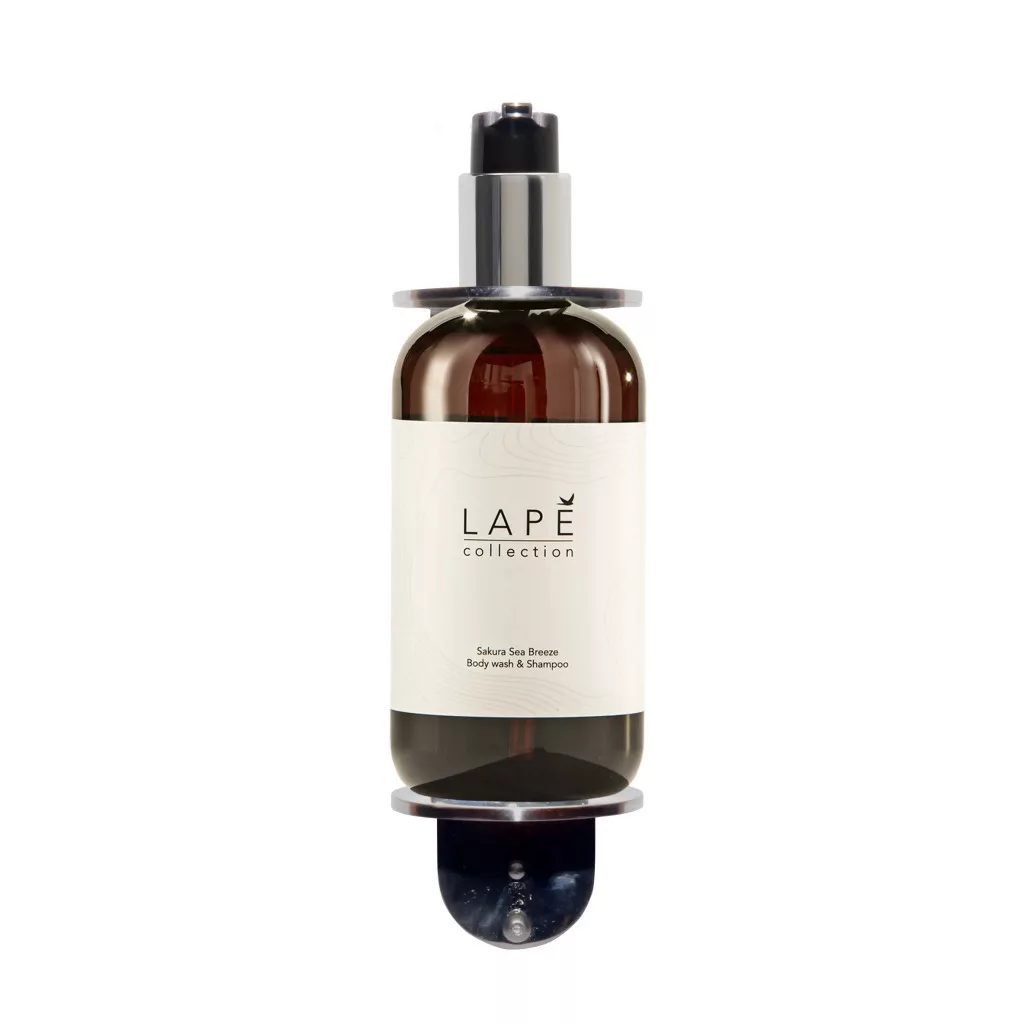 LAPĒ Sakura Sea Breeze tusfürdő és kondicionáló sampon, egy Nordic Swan tanúsítvánnyal rendelkező, tusfürdő és kondicionáló sampon, modern, trendi, biológiailag nagyrészt lebomló, finom Sakura Sea Breeze illattal. Gyengéd tisztító összetevőivel, eltávolítja a zsírt és a szennyeződéseket, mellyel fényt és extra volument ad a hajnak. Minden bőrtípusra alkalmas, a bőrt puhává, simává és energikussá teszi. Tegye elérhetővé, hogy vendégei érezzék a tisztaságot, a relaxációt és a nyugodt élményt. A LAPĒ kollekció divatos stílusa több ügyfélkör számára kiterjeszthető, például.pl.: szállodai szobában, mosdóban és zuhanyzóban, wellness/SPA területeken. A 300 ml-es pumpás flakonokban szállított LAPĒ Collection finom összetétele minden dizájner mosdót és zuhanyzót feldob, férfiaknak és nőknek egyaránt tetszik. Kényeztesse vendégeit a Lapē kollekció érzéki szépségével, miközben minimalizálja a környezetre gyakorolt hatást.