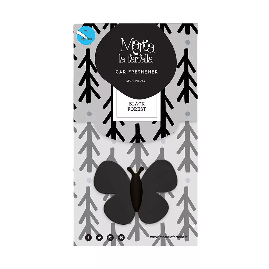 A Marta la Farfalla autóillatosító (12db/karton) Black Forest egy kiváló minőségű termék, amely a járművek belső terét kellemes illattal tölti meg. Az autóillatosító Marta la Farfalla egyedi fekete erdős illatot biztosít, amely hosszan tart és frissé teszi az autó belső terét.