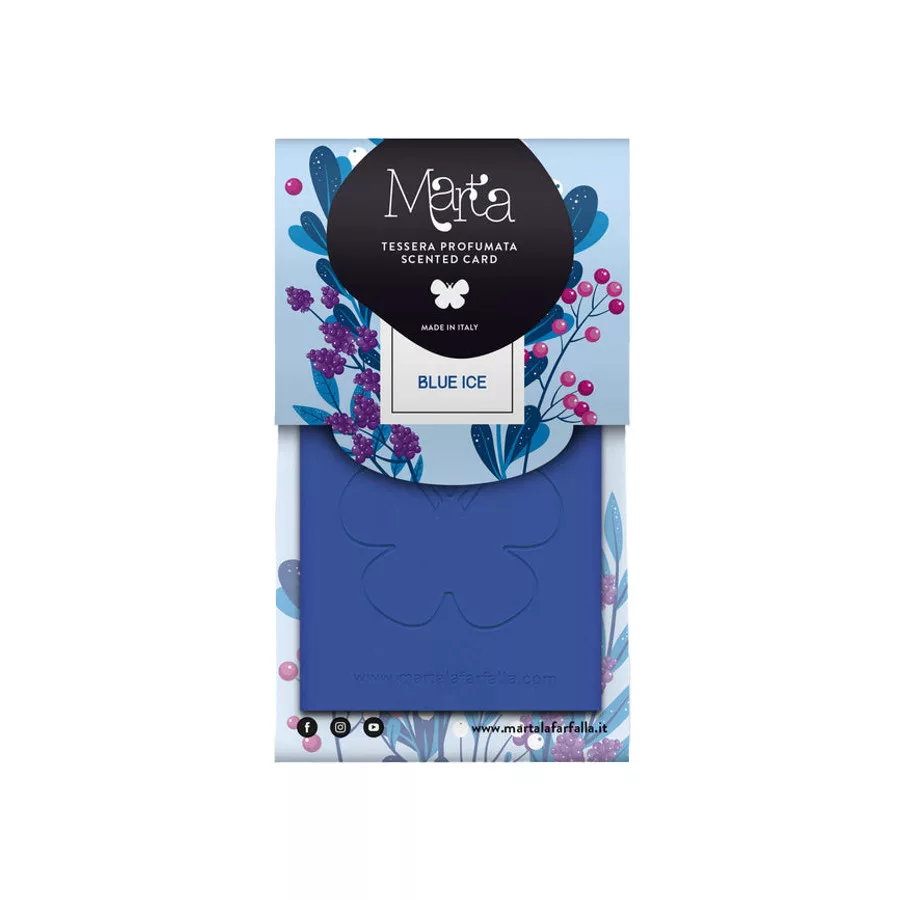 A Marta la Farfalla Card autóillatosító egy kiváló minőségű termék, amely kellemes 'Blue Ice' illattal tölti be autóját. A csomag 12 darab illatosítót tartalmaz, így hosszú ideig élvezheti a frissességet.
