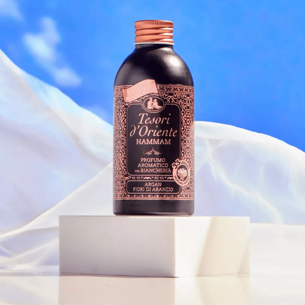 A Tesori d'Oriente Hammam mosóparfüm egy valódi, koncentrált illateszencia, amelyet kifejezetten textíliákhoz fejlesztettek ki, hogy ruháidnak egyedi, intenzív és hosszan tartó illatot kölcsönözzön. Az ősi Hammam rituálé által inspirált orientális-virágos illatcsokor az argánolaj meleg jegyeivel és a narancsvirág frissességével kényezteti az érzékeket.