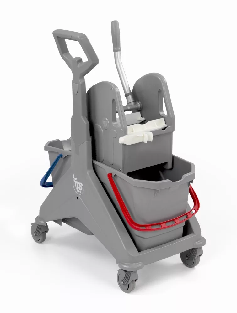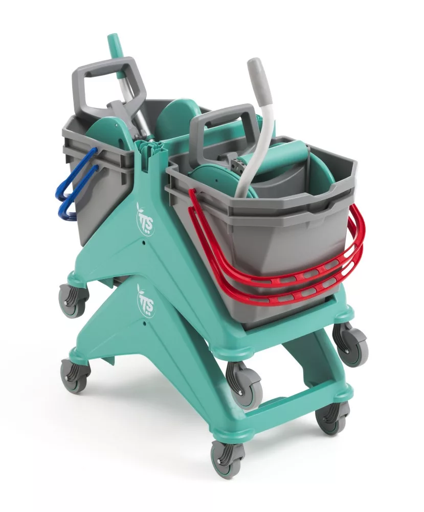 Felhasználás: Ez a felmosókocsi kiválóan alkalmas a padlók tisztítására. A két vödrös rendszer lehetővé teszi a szennyezett és tiszta víz elkülönítését. A prés magasabb pozícióban helyezkedik el, így kényelmesebb és egészségesebb a kezelő számára. A felmosókocsi kompatibilis a 15 literes vödrökkel és minden TTS préssel