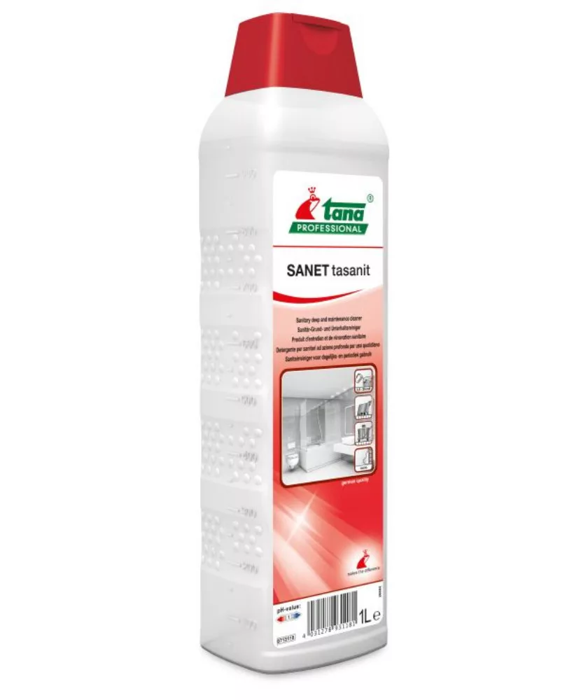 A Tana Sanet Tasanit egy hatékony, szulfonsavas napi szanitertisztító és vízkőoldó, amely kiválóan alkalmas a szaniter alap- és karbantartó tisztításra.