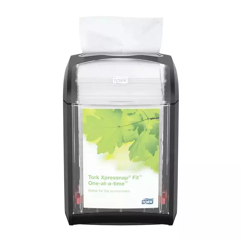 Tegye még hatékonyabbá vállalkozását! A Tork Xpressnap Fit® adagoló kitűnő választás az olyan kis étteremláncok és önálló éttermek számára, ahol a szalvétákat az asztalokra vagy a pultra helyezik. Eddigi legkompaktabb Xpressnap rendszerünk egyesével történő szalvétaadagolást tesz lehetővé, és hasonlóan takarékos a hulladékképződést és a szalvétafogyasztást illetően. A Tork Xpressnap Fit® nemcsak több vendég kiszolgálására alkalmas két utántöltés között – a Fast fold és a Counterfold rendszerekkel összehasonlítva –, hanem a tárolóhelyigényt is csökkenti, és több mint 50%-kal mérsékeli a használat nélkül eldobott szalvéták számát.