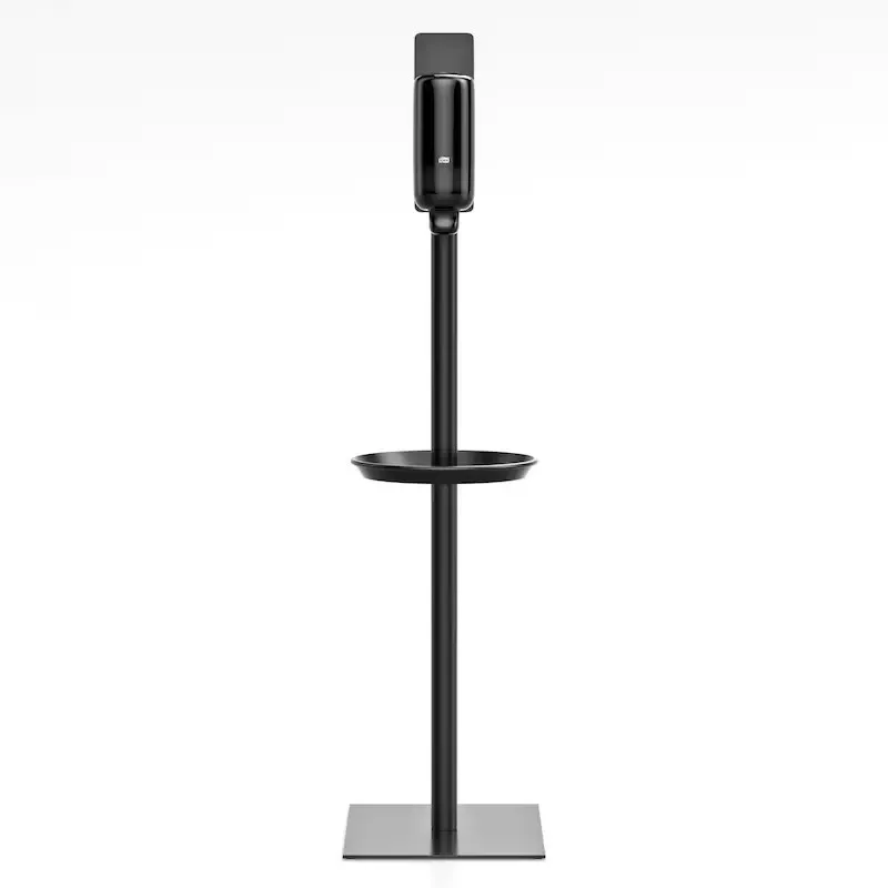 A Tork fertőtlenítőkhöz készült higiéniai állványnak köszönhetően senki sem feledkezik meg a kézhigiéniáról; az alkalmazottak és az ügyfelek számára is elérhető megoldást jelent, ha nincs a közelben folyó víz. A többféle környezetben és közös használatú térben kihelyezhető állvány rugalmasan mozdítható és állítható a kézhigiéniai igényeknek megfelelően aszerint, hogy hol van rá a legnagyobb szükség. Az adagolók külön állnak rendelkezésre.