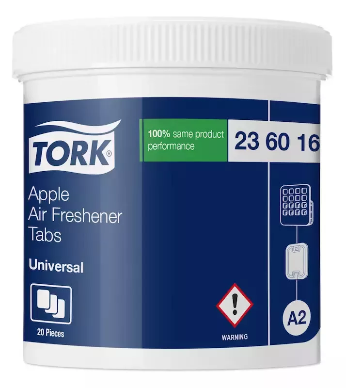 Biztosítson kellemes illatot a mosdókban a Tork illatosító gumilappal. Az impregnált gumilap friss almaillatot áraszt, és könnyedén felhelyezhető a megfelelő helyre.