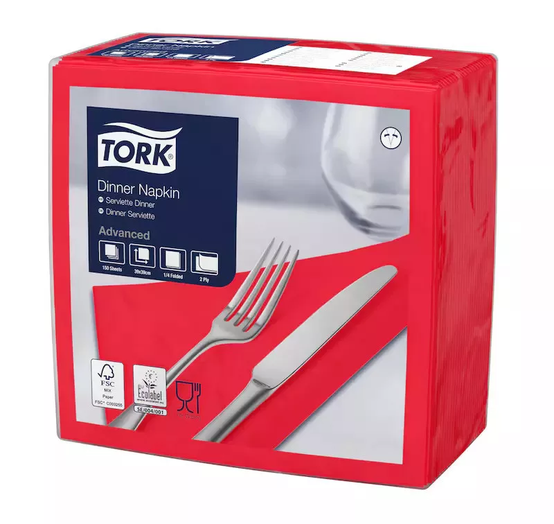 A Tork Dinner szalvéták mindenhol megállják a helyüket: egyszerre elegánsak és praktikusak a különleges alkalmakon. Többféle színben kaphatók, hogy illeszkedni tudjanak bármelyik étterem színvilágához.