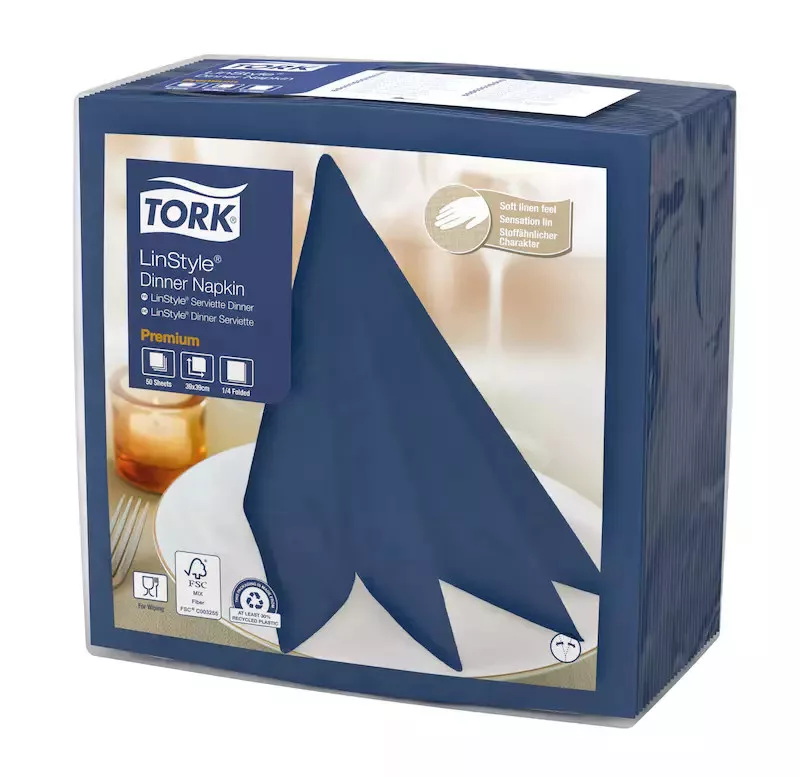 A Tork LinStyle® szalvétákat az olyan teljes körű kiszolgálást nyújtó éttermeknek ajánljuk, amelyek minőségi légkörrel szeretnék lenyűgözni vendégeiket. A valódi textilre megszólalásig hasonlító szalvéták érezhetően puhábbak és tömörebbek a hagyományos papírszalvétáknál, és a nedvszívó képességük is nagyobb. A modern és klasszikus színek sokféle változatában kapható szalvétákkal vendégei a textilszalvéták eleganciáját élhetik meg.