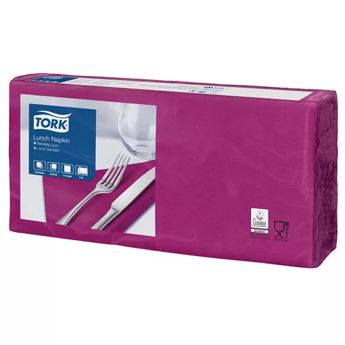 A Tork Lunch szalvéták elsősorban könnyű ételekhez illenek. Többféle modern és klasszikus színben kaphatók, így kiválóan illeszkednek bármelyik étterem színvilágához.