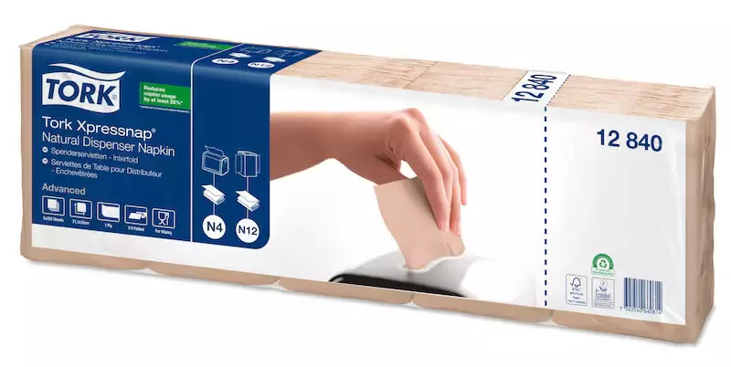 A Tork Xpressnap® szalvétaadagolók tökéletesek önkiszolgáló éttermekbe. Ezzel a rendszerrel 25%-kal csökkenthető a szalvétafogyasztás a hagyományos szalvétaadagolókhoz képest. A Tork Xpressnap® egyrétegű, natúr adagolós szalvéták 100%-ban újrahasznosított rostanyagokból készültek; a szalvéta remek választás, ha fontos Önnek a környezetvédelem, és ezt szeretné mások tudtára is adni.