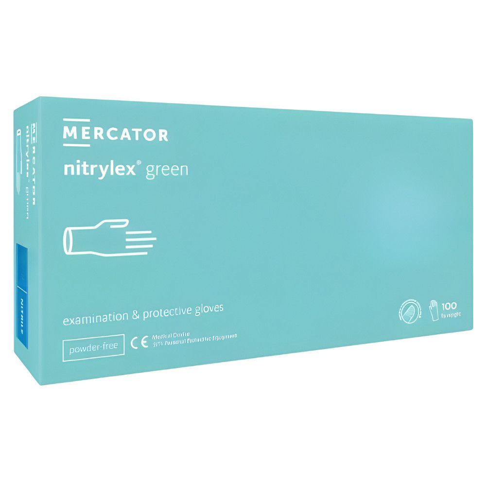 A Mercator nitrylex® green egy prémium minőségű, púdermentes nitril vizsgálókesztyű, amely hatékony gátat képez a baktériumok, vírusok és gombák ellen. Különleges mentazöld színe nemcsak esztétikus, de megkönnyíti a megkülönböztetést is a munkaterületen. A latexmentes kialakításnak köszönhetően ideális választás az érzékeny bőrűek és a latexre allergiás felhasználók számára is, minimalizálva az irritáció kockázatát.