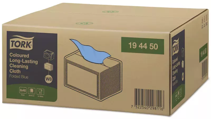 Tork tisztítókendő W8 többször használható, hajtogatott, KÉK 38,5X32, 40db/csg, 8csg/karton
