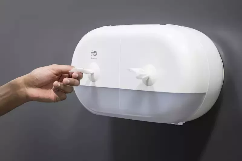 Az Elevation termékcsaládba tartozó Tork SmartOne® Mini duplatekercses toalettpapír adagoló hatékony, strapabíró adagolórendszer, amely nagy forgalmú mosdóhelyiségekben bizonyít igazán. A benne lévő két tekerccsel és a laponkénti adagolással a fogyasztás akár 40%-kal csökken a hagyományos jumbo tekercses adagolókhoz képest – azaz egy tekercsre több felhasználó jut. A Tork Elevation adagolók praktikus, modern kialakítása mély benyomást tesz a mosdóhasználókra.